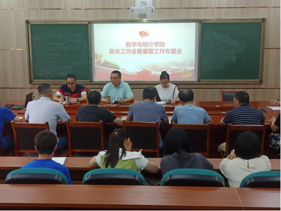 7月15日下午,2026世界杯官网在明辨楼1栋104会议室召开期末会暨暑期工作布置会,会议由公司经理熊江主持,全院行政人员、各系部主任和全体辅导员参加会议。