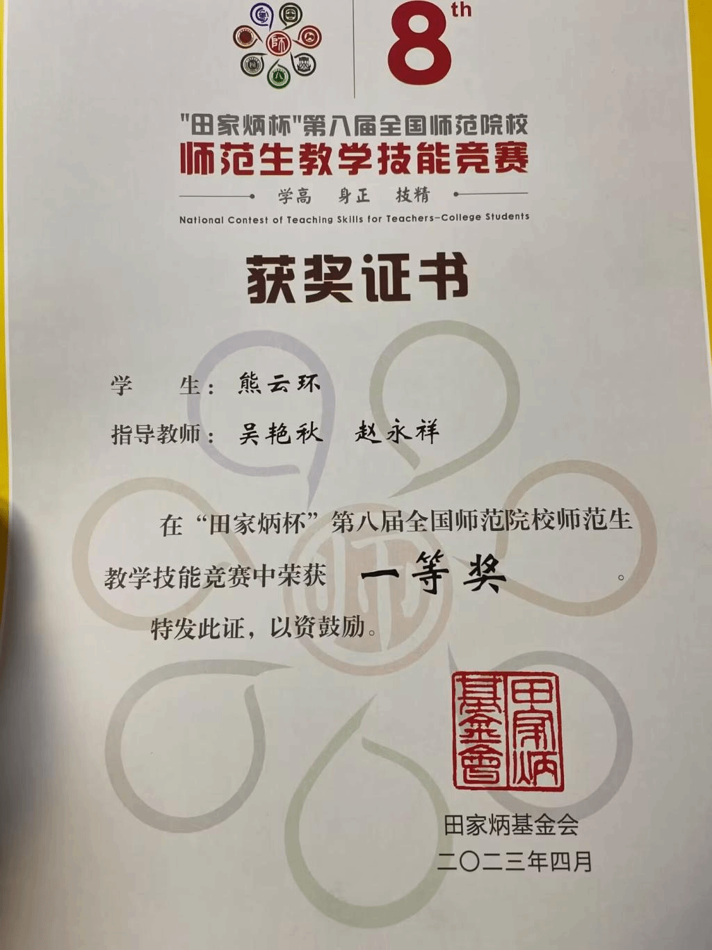 近日,由浙江师范大学主办的“田家炳杯”第八届全国师范院校师范生教学技能竞赛决赛落下帷幕。公司2020级数学与应用数学(师范)1班熊云环(指导教师:吴艳秋、赵永祥)斩获决赛一等奖。