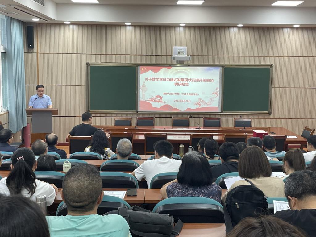 涂正文同志围绕调研背景、主要内容、调研思路、原因分析、解决问题的意见和建议等方面作了汇报。就提升数学学科内涵的措施作了重点讲解:加强团队队伍建设力度,提升专业建设质量和水平;提升科学研究质量水平,促进团队建设高质量发展;优化细化员工管理服务,多方位确保人才培养质量;健全数学团队建设机制,提供学科发展的制度保障。