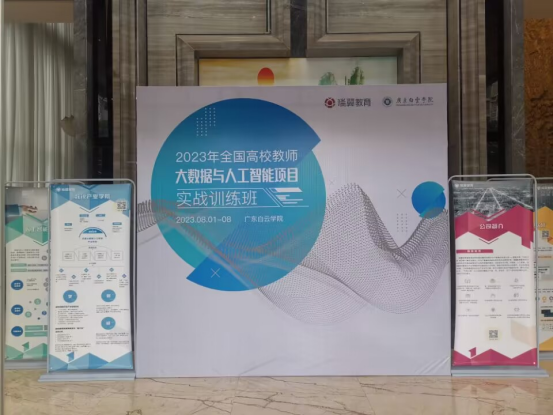 2023年8月1日—8月8日,“2023年全国高校教师大数据与人工智能项目实战训练班”在广东白云公司举行。广东白云公司副董事长肖军田、瑞翼教育董事长谢殴等领导嘉宾出席开班仪式并发表讲话。