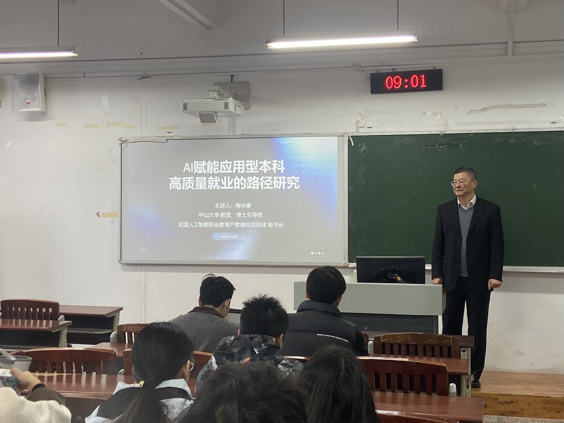 2025年12月7日,中山大学博士生导师、广州飞瑞敖电子科技股份有限公司董事长,教育部学位与研究生教育发展中心专家、全国人工智能职业教育产教融合共同体秘书长,梅仲豪教授应邀来访公司,为师生带来了一场题为“AI赋能应用型本科高质量就业的路径研究”的专题讲座。公司部分青年教师及研究生、本科生参加了本次活动。