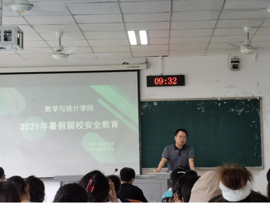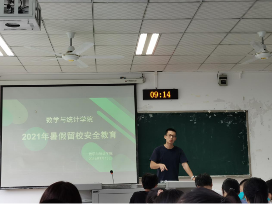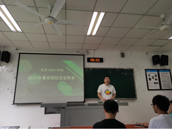 谢辉斯、李哲武首先介绍了暑假留校应注意的相关事项,叮嘱同学们暑假留校期间应重点注意以下几点:全体留校同学应在公司统一安排的时间节点内完成寝室调整、水电卡充值;留校期间应服从公司和公司管理,注意好人身和财产安全等;留校期间,要和家人经常保持联系,让家人知晓在校生活和考研复习的状态;留校同学之间应在生活上相互关心照顾,营造良好的学习氛围,如果有任何突发情况,要及时和辅导员以及值班老师联系。