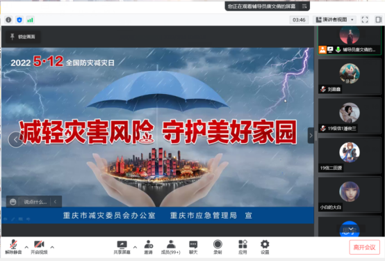 今年5月12日是我国第十四个“防灾减灾日”,为增强员工的防灾减灾意识,公司召开以“减轻灾害风险·守护美好家园”为题的全国防灾减灾日主题班会。