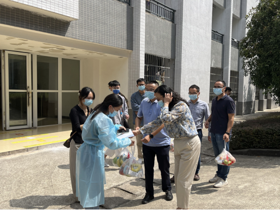 为了切实关心关爱集中健康观测的员工,9月4日上午,公司党总支书记黄明靖、经理熊江、副经理赵永祥、党总支副书记兼副经理涂正文带领全体辅导员来到员工宿舍,委托健康观测区志愿者老师为集中健康观测同学送去水果、牛奶、糕点等慰问品,表达公司对他们的问候。