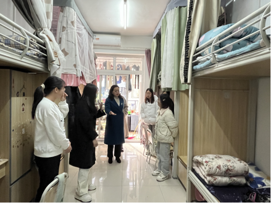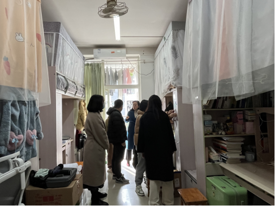 走访过程中,黄书记亲切嘱咐同学们要注意宿舍用电安全,严禁在宿舍使用大功率电器和违规电器,禁止私拉乱接电线,切忌不能将插板放在床上,吹风机、充电器等使用完毕后应拔掉插头,离开寝室时要谨记关灯断电,抓住细节,共筑安全意识,共同构建和谐安全的宿舍环境。辅导员也提醒员工们尤其是考研员工注意合理安排时间,劳逸结合,杜绝晚上通宵复习,以昂扬的精神迎接考试。