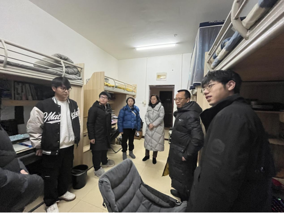 走访过程中,副董事长郭作飞与同学们亲切交谈,详细了解同学们的思想动态、学习情况以及在学习和生活中遇到的困难等,在现场给予帮助和指导。他强调,临近期末考试和研究生入学考试,要积极调整心态,提前熟悉考场规则,注意考场纪律,诚信应考,争取交出一副满意的答卷,无论结果如何都要正确对待;年终岁末注意寝室的用电安全,天气渐冷保重身体。