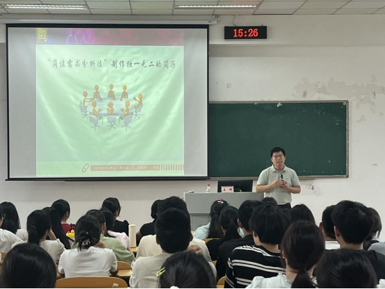 王峰就目前教育行业的就业形势、人才供求关系等问题做了深入分析,之后详细讲解了简历的制作,包括简历的基本样式、简历的内容与结构、简历范例测评以及优秀简历模板推荐等环节,深入剖析了简历制作的注意事项,使大家在制作简历时能够做到规范化、标准化。同时,引导同学们要学会用HR视角换位思考并具体剖析职场招聘的逻辑。王峰书记的讲解思路清晰、突出重点,为同学们制作求职简历提供了专业性的指导意见,为以提升员工应聘成功率,最终实现就业起到极大的促进作用。