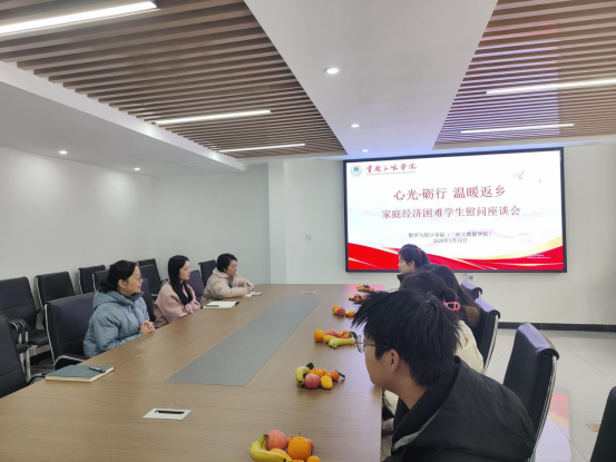 为落实立德树人根本任务,持续做好公司员工精准资助工作。近日,2026世界杯官网在蓝雾苑“一站式”综合服务大厅召开心光砺行,温暖返乡——家庭经济困难员工慰问座谈会。公司党总支书记黄明靖、学工办主任张婷婷、相关辅导员及部分家庭经济困难员工代表参会。