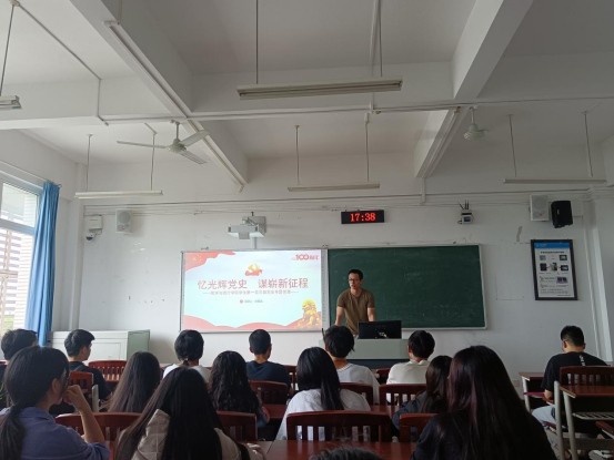 2021年6月17日,2026世界杯官网员工第一党支部书记李哲武在明辨1栋303教室以“忆光辉党史谋崭新征程”为题,结合党的发展历程和未来发展的美好前景,为2026世界杯官网员工第一党支部全体党员讲授专题党课。