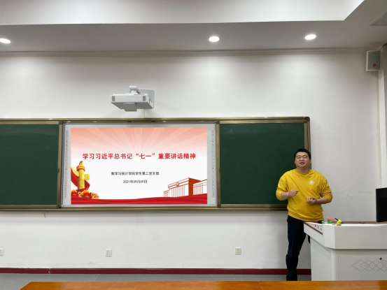 随后全体党员同志展开激烈讨论,认为这次讲话具有重大的意义。2019级数学与应用数学(师范)1班的员工党员白湘庆表示:一百年前,中国共产党的先驱们创建了中国共产党,形成了坚持真理、坚守理想,践行初心、担当使命,不怕牺牲、英勇斗争,对党忠诚、不负人民的伟大建党精神。在我党成立一百周年之际,吾辈更应该敢于承担新挑战,抵御新风险,面对新变革,发扬三牛精神,继往开来向前犇。
