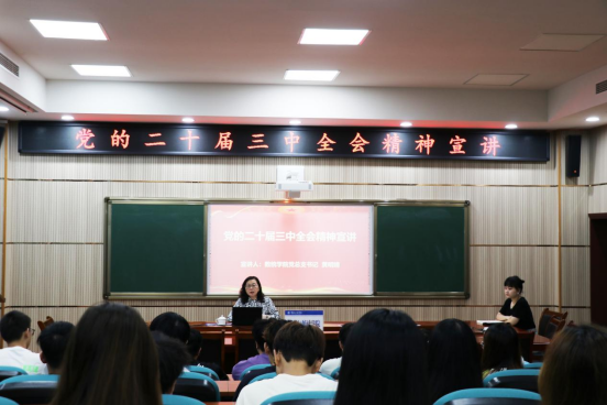 宣讲中,黄书记重点讲到:党的二十届三中全会审议通过的《中共中央关于进一步全面深化改革、推进中国式现代化的决定》提出教育、科技、人才是中国式现代化的基础性、战略性支撑,党的二十大报告明确提出到2035年建成教育强国、科技强国、人才强国,强调教育是国之大计、党之大计,吹响了加快建设教育强国的号角。建设教育强国,基点在基础教育,基础教育搞得越扎实,教育强国步伐就越稳、后劲就越足。